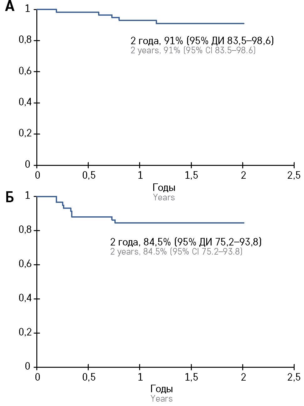 Figure 5. Overall (А) and event-free survival (B)