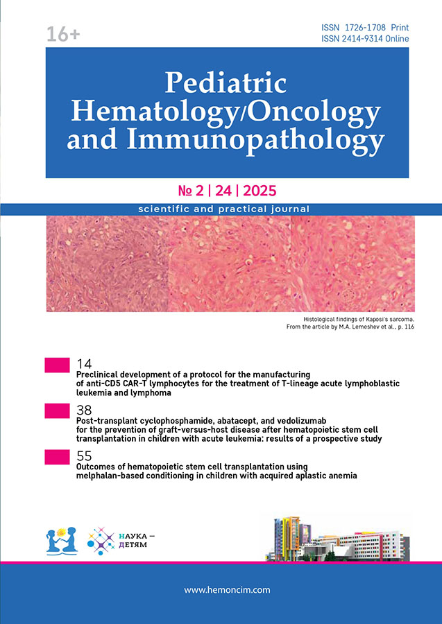 - Authors: Lemeshev M.A.1, Vasilieva A.P.1, Radygina S.A.1, Abramov D.S.1, Khachatryan L.A.1, Abashidze Z.A.1, Kozlovskaya S.N.1, Skvortsova Y.V.1, Balashov D.N.1, Maschan A.A.1