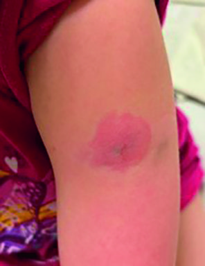 Figure 1 The primary lesion located in the upper third of the left upper arm following a subcutaneous injection