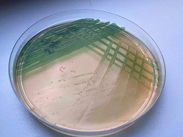 Figure 3 St. maltophilia colonies on chromogenic agar observed after 24 hours of incubation at 35°C
